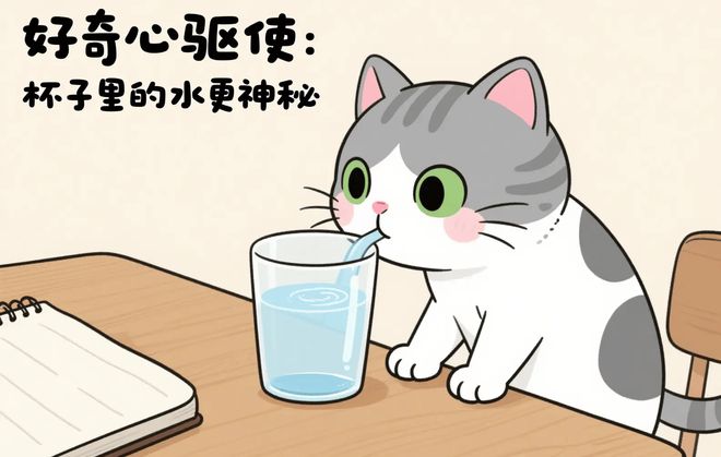 其实我们猫对水的挑剔是有科学依据的。我们的祖先来自干旱地区,本能告诉我们静止的水可能不安全。所以流动的、新鲜的水才是最佳选择。你们买的那些花哨的猫咪饮水机?太吵了!而且谁知道那里面滋生了多少细菌?相比之下,你刚倒的那杯清水简直就是猫界的依云矿泉水。所以下次再看到我把头埋进你的马克杯时,别急着发火。你应该感到荣幸——这说明我认可你的品味,愿意和你分享最好的水资源。或者,你也可以学聪明点,专门给我准备一个和你一样的杯子,放在我喜欢的位置。记住:要经常换水,最好当着我的面倒。这样我们就能和平共处了,我亲爱的、迟钝的仆人。