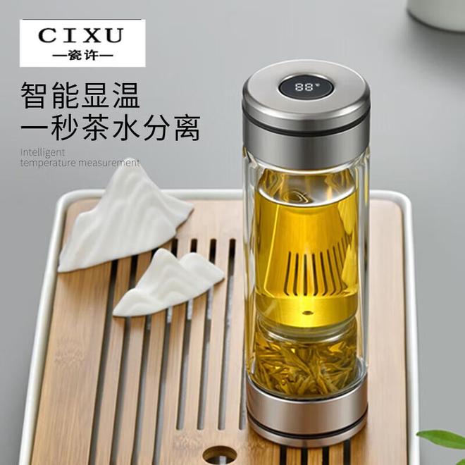 瓷许CIXU玻璃茶杯,匠心打造茶水分离泡茶杯,双层高硼硅玻璃设计,防烫隔热更安全。一键过滤,轻松实现茶汤分离,保留原叶醇香。简约商务风格,适合办公、车载等多场景使用。人性化杯盖设计,密封防漏,携带无忧。精选优质材质,健康环保,尽显品味生活。联系客服享顺丰包邮服务,品质之选,为您带来舒适饮茶体验。