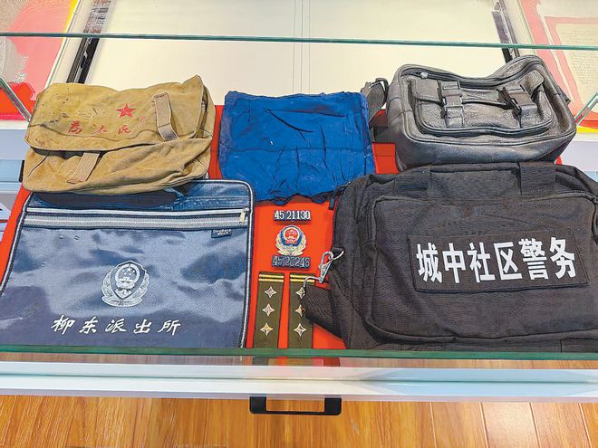 在柳州市公安局柳东派出所荣誉室内,历史的厚重与时代的脉搏在此交汇:褪色的帆布包沉淀着岁月痕迹,斑驳的军绿挎包镌刻着往昔荣光,黑色警用背包见证着职能转型,精巧的社区警务功能包彰显服务创新,而崭新的移动警务通则跃动着科技强警的脉搏。这五代装备跨越六十五载春秋,虽形态随时代更迭而演变,却始终如一地传承着“背包精神”——民警用脚步丈量民情,将千家万户的期盼与平安化作肩头使命。它们不仅是警务装备演进的立体年鉴,更是柳东派出所为民服务永远在路上的鲜活见证。