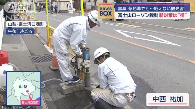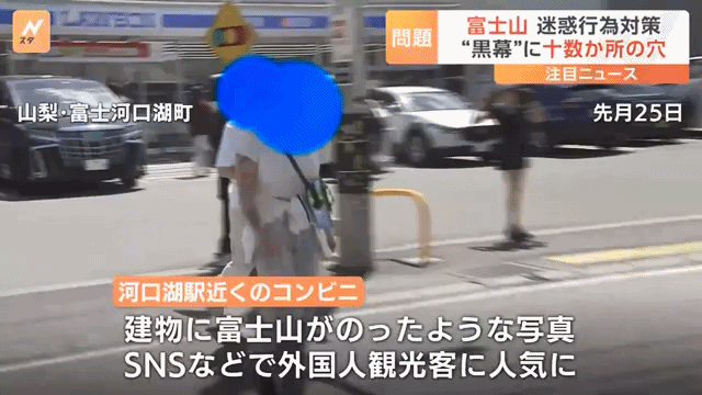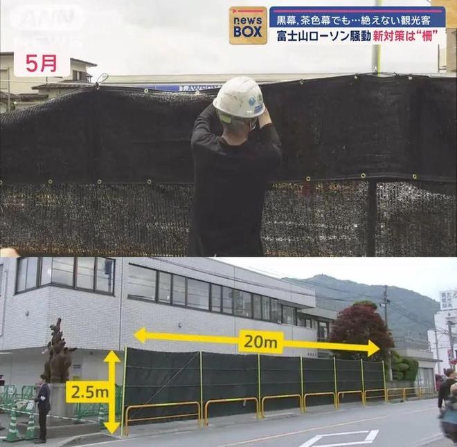 最后一狠心,在今年4月份直接拉起一张高约2.5米、宽约20米的大黑幕,把富士山给“遮”起来了,直接“摧毁”这个打卡点。