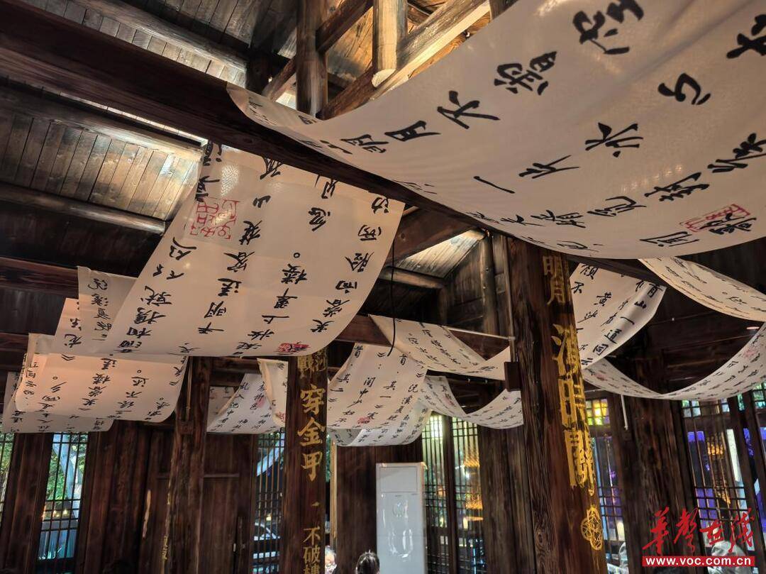 正在二楼给战友讲解碑文的黔阳本地人周建国,今年62岁,他指着条幔说:“我在古城住了一辈子,以前带朋友逛,只能指着老房子说‘这是老建筑’,现在来茶馆,喝着茶就能讲王昌龄的故事,连年轻人都愿意听,这才是把黔阳的文化讲活了。”