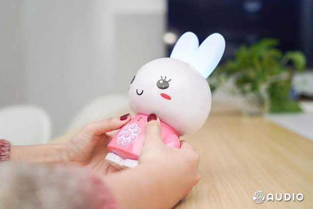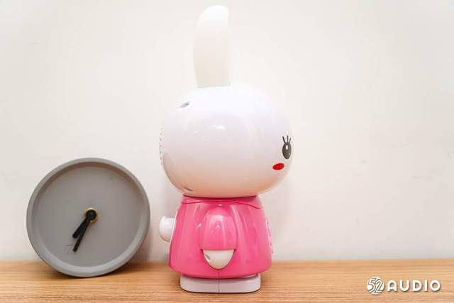 兔兔胸前有一绿一红的两颗信号灯,腹部是一个花瓣设计的操作面板,集成了除电源和音量调节以外的所有操作。