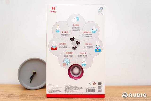 值得注意的是电源和音量调节的功能被一同集成在了兔尾巴的位置,增添了产品的趣味性。